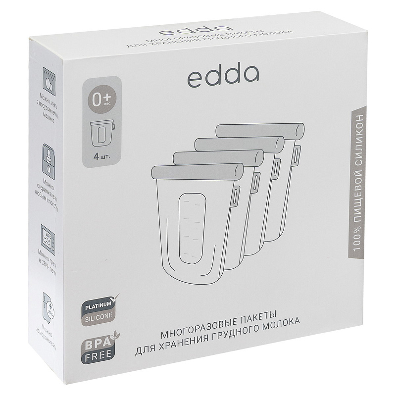 Набор силиконовых пакетов edda для грудного молока 4 шт., 240 мл MSB-01001 ПломбирНет оценокХарактеристики