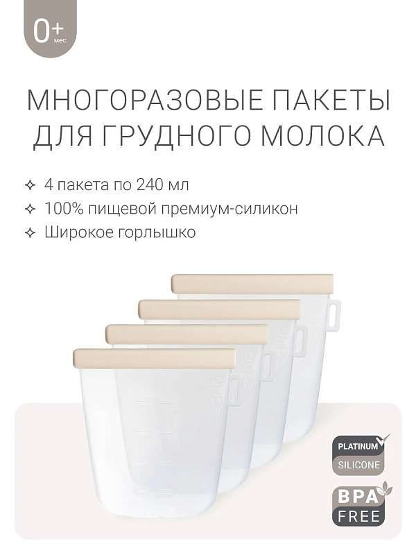 Набор силиконовых пакетов edda для грудного молока 4 шт., 240 мл MSB-01001 Пломбир