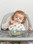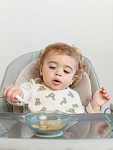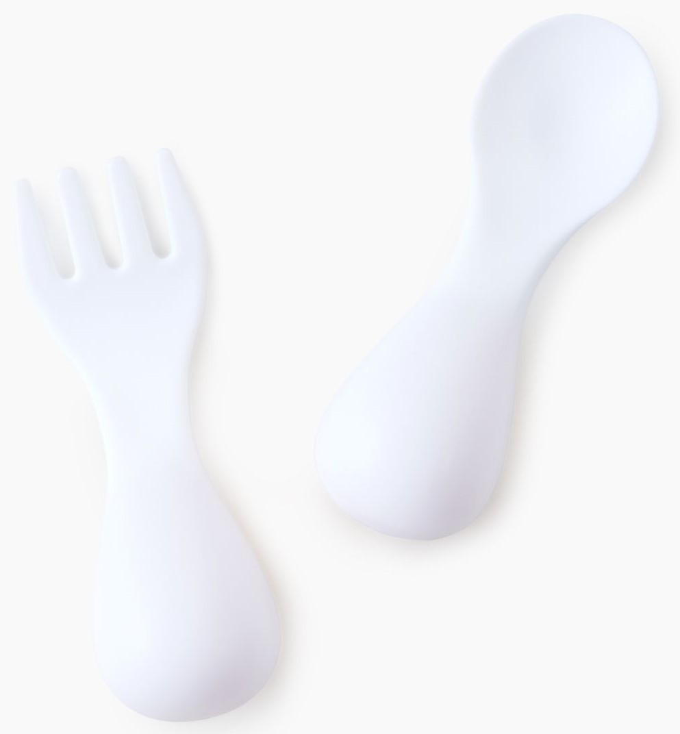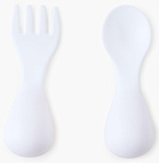 Набор из ложки и вилки особой формы станет незаменимым атрибутом для приучения ребёнка к самостоятельному приему пищи. Глубокая ложечка удобна для зачерпывания жидкой пищи, а вилочка сделана с закруглёнными концами для дополнительной безопасности малыша. Собственные столовые приборы стимулируют малыша учиться кушать самому.