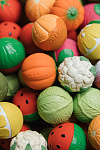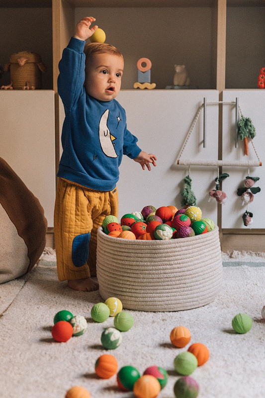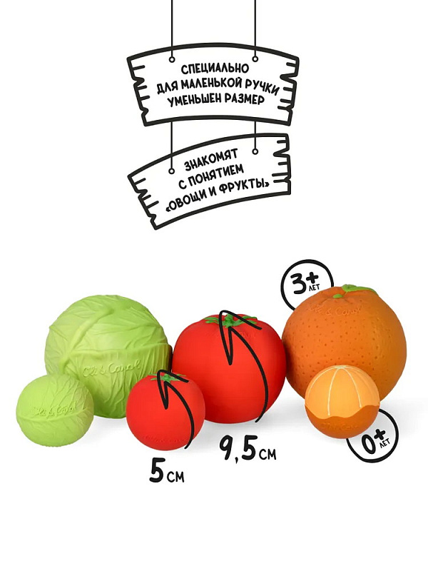 Эргономичная форма позволяет даже самым маленьким легко подбрасывать, ловить, хватать и сжимать мячик, а еще он легко, но не резко отскакивает от поверхностей. В игре малыш знакомится с понятием «овощи и фрукты» и приобретает здоровые привычки с рождения.