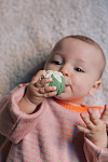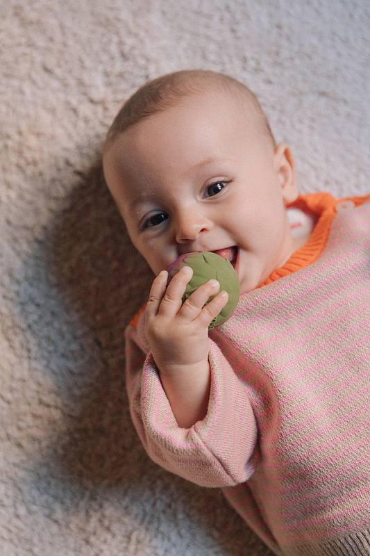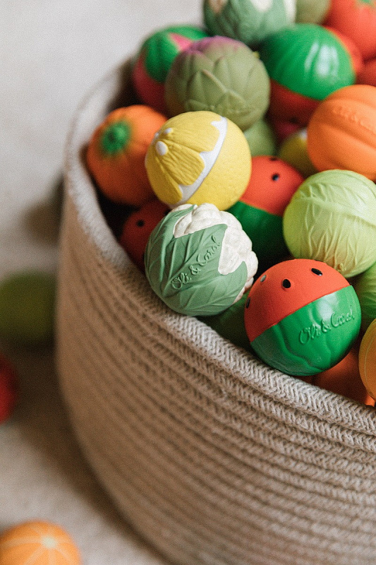 Мячики Veggie Salad Baby Sensory Balls изготовлены из 100% натурального каучука и окрашены пищевыми красителями. Изделия Oli&Carol — без отверстий, а значит, это самые безопасные и гигиеничные игрушки для купания.