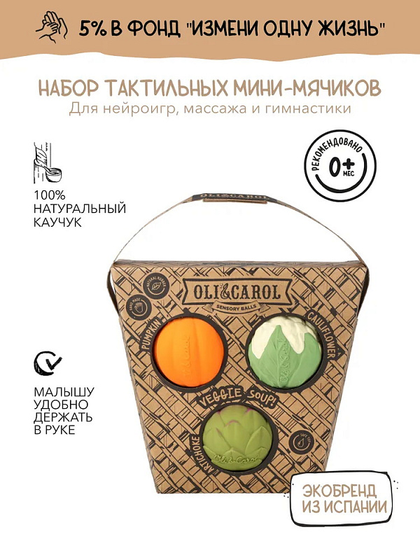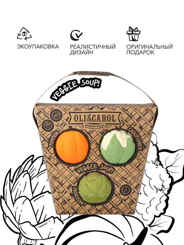 Набор тактильных мини-мячиков Oli&Carol Veggie Salad Baby Sensory Balls L-BABY-BALL-VEGGIES Овощной супчикНет оценокХарактеристики