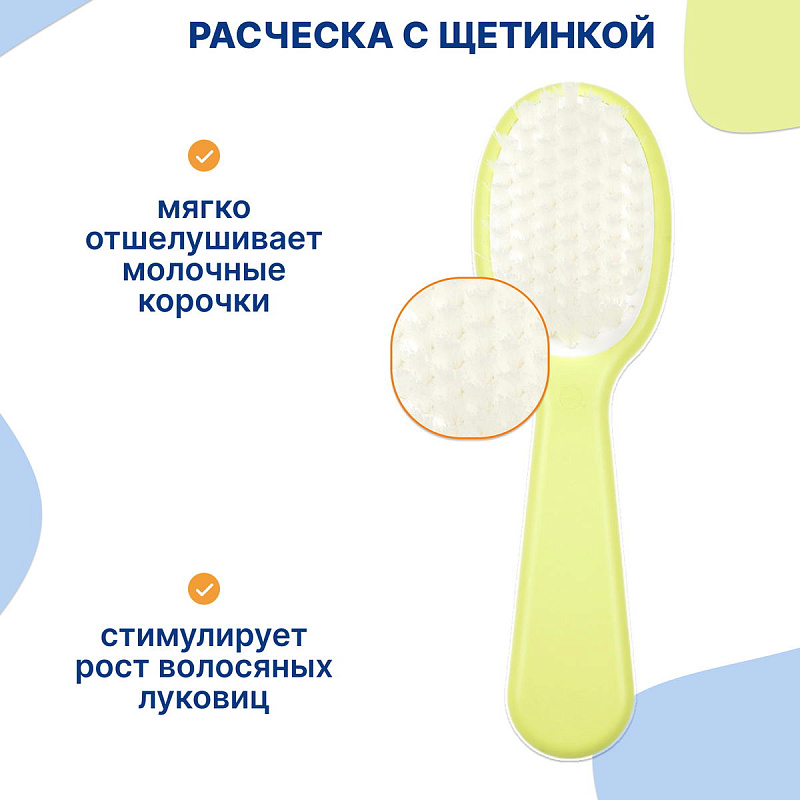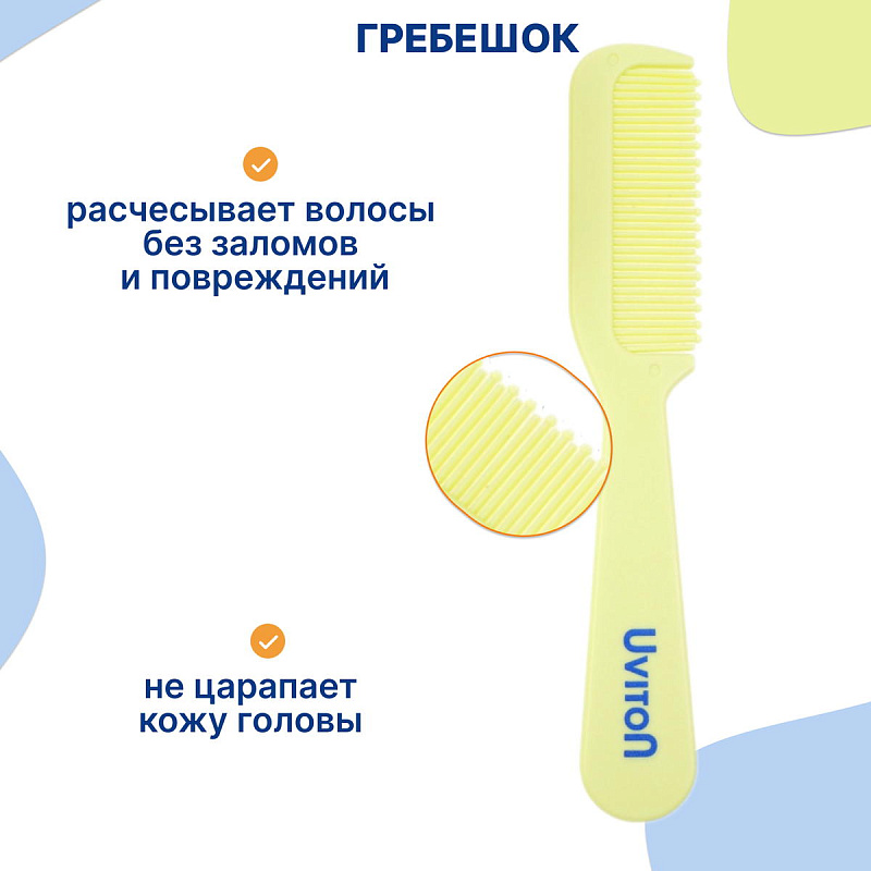 Мягкая щеточка для волос и гребешок от Uviton специально для нежного ухода за детскими волосами. Современный дизайн, эргономичная ручка. Удобное хранение - теперь гребешок не потеряется, его можно прикрепить в щеточке экономя место для хранения аксессуара.