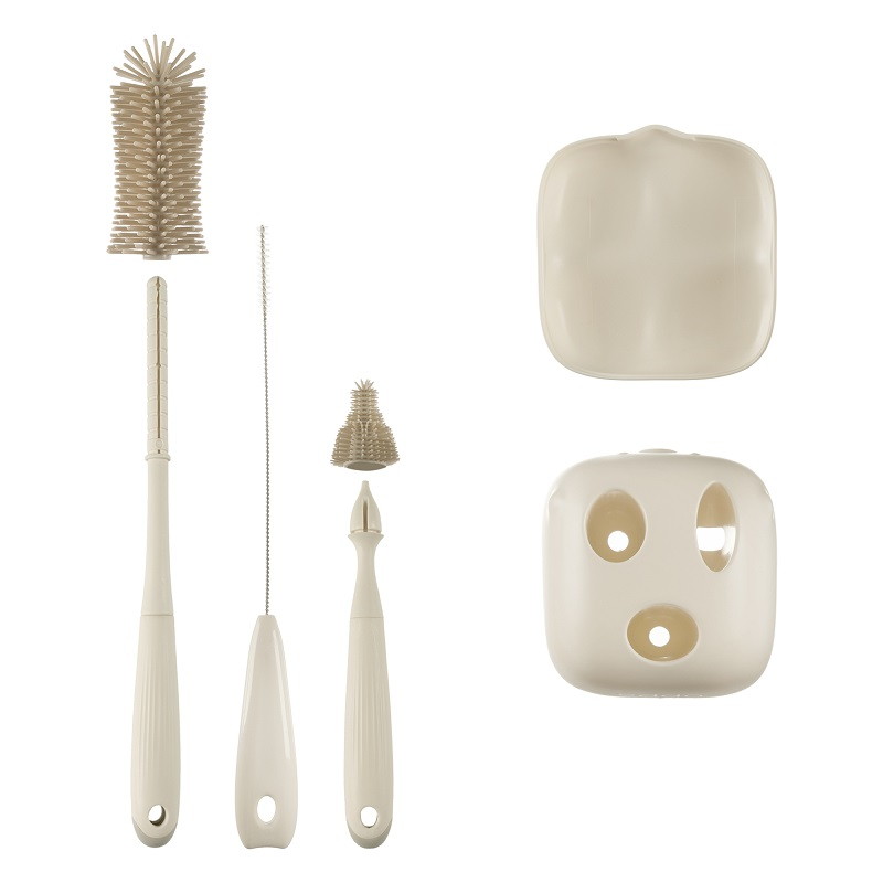 Материал изготовленияёршики для бутылочек и мытья сосок — пищевой силикон, полипропилен; щёточка для трубочек — нейлон, нержавеющая сталь, полипропилен; подставка с поддоном для сбора воды — АБС-пластик