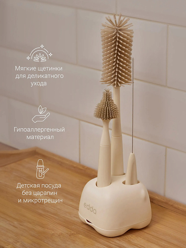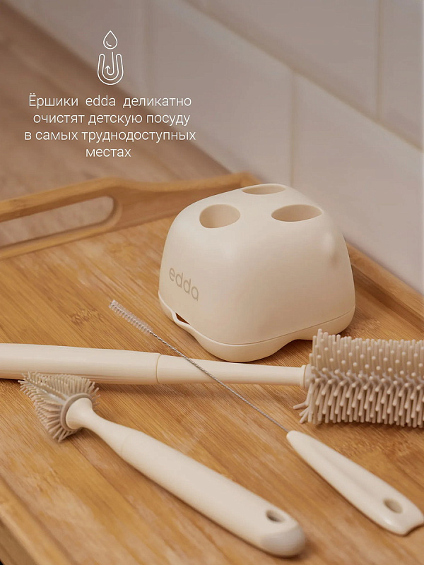Стильный и функциональный набор ёршиков edda разработан специально для ухода за детской посудой. Это самые необходимые предметы, с помощью которых можно быстро и легко очистить детские бутылочки, соски и трубочки.