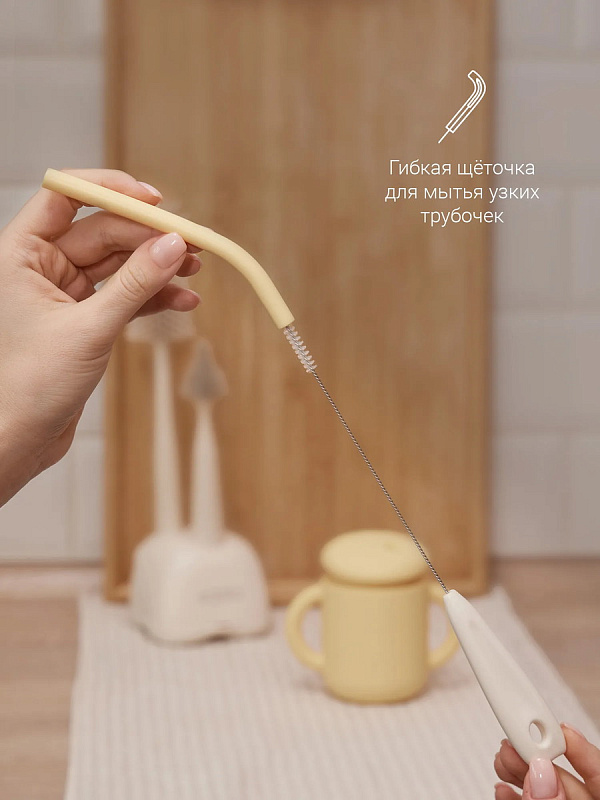 • Гибкая и тонкая щёточка легко отмывает трубочки по всей длине.