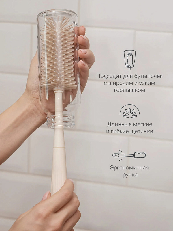 • Ёршик для бутылочек подходит для мытья разных ёмкостей как с широким, так и с узким горлышком.