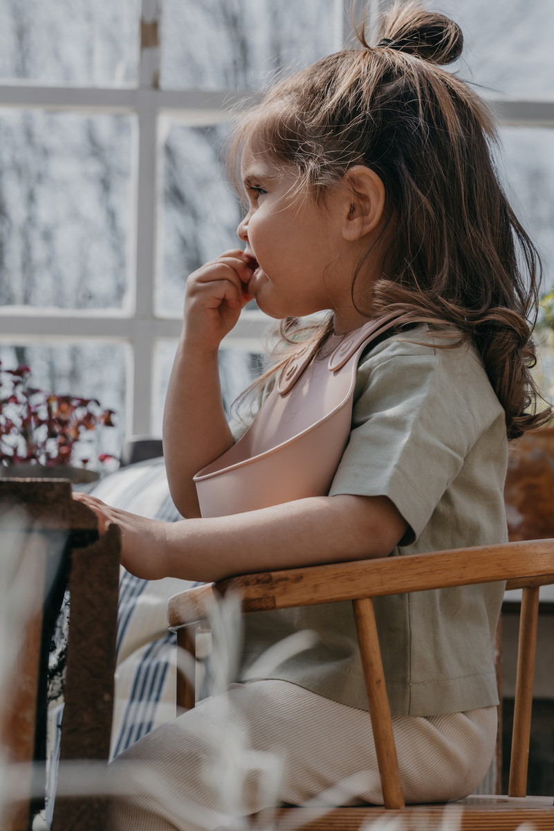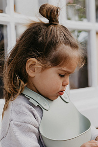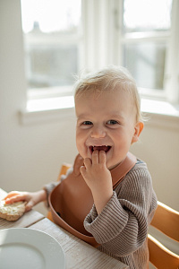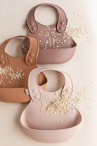 Широкий карман нагрудника имеет идеальную плотность: он достаточно мягкий, чтобы ребенок мог прижаться к столу, но в меру жесткий, чтобы хорошо держать форму и не допустить проливания жидкости.