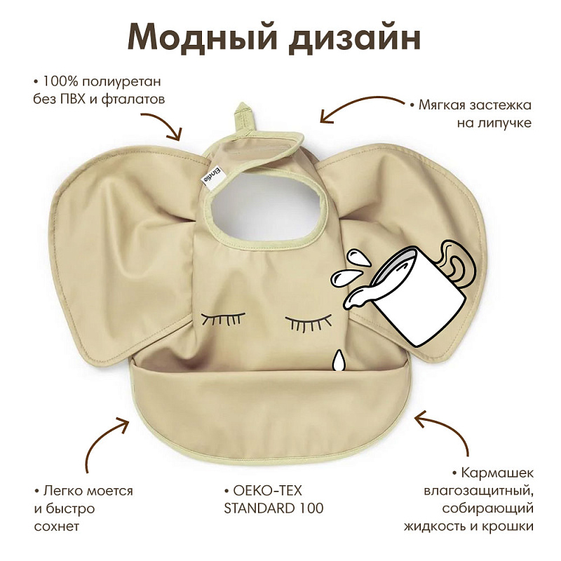 Широкий крой надежно прикрывает грудь и плечи ребёнка, а удобный передний кармашек соберет в себя все крошки и случайные капли, так что вам больше не придется мыть полы после каждого обеда.