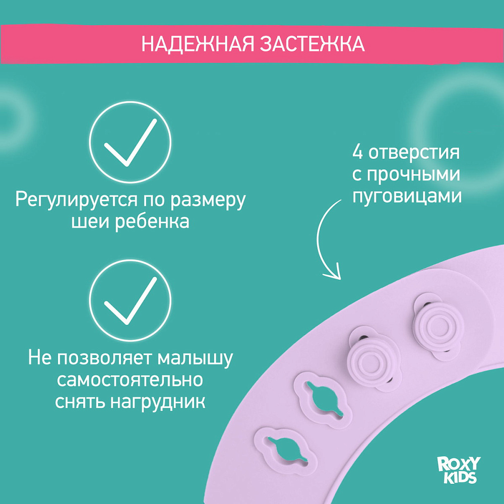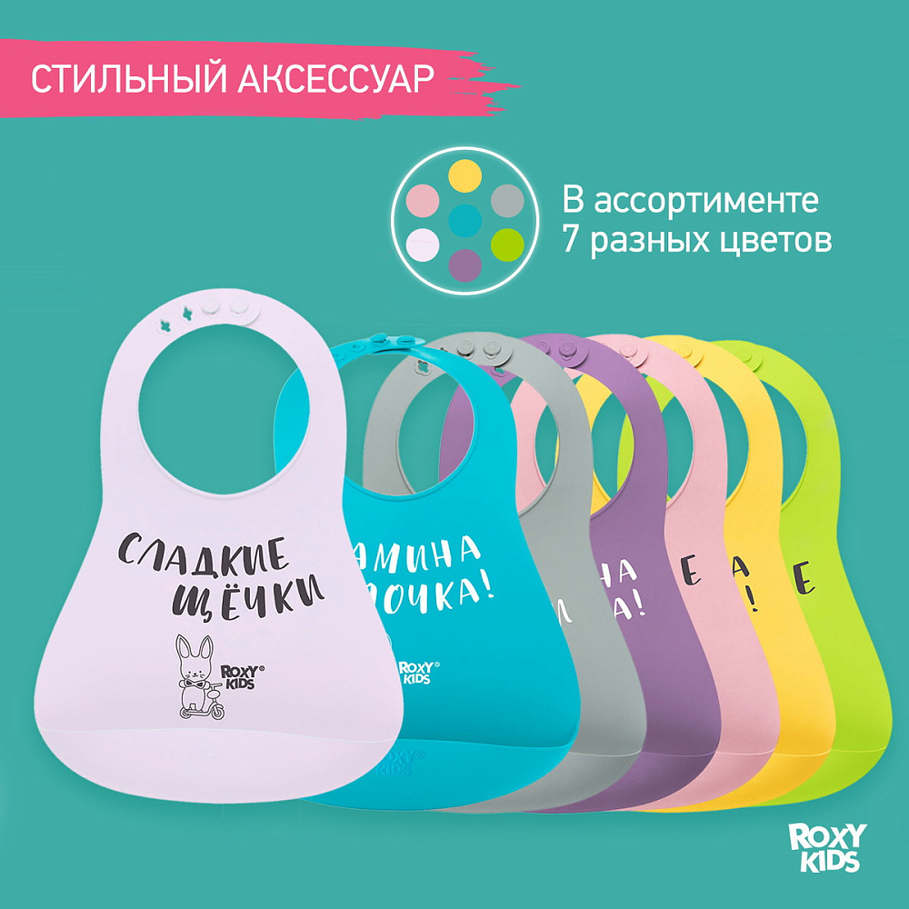 Нагрудник детский с карманом надежно защитит одежду вашего малыша от загрязнений и сохранит чистоту в доме. Мягкий на ощупь, но прочный материал не поцарапает и не натрет нежную шею ребенка. Нагрудник не впитывает запахи и легко моется даже в посудомоечной машине при температуре не больше 80 градусов Цельсия. Отличительной особенностью этого нагрудника является особая надежная застежка, которая позволяет регулировать размер аксессуара, а также не даст ребенку самостоятельно снять нагрудник с себя. Глубокий карман для крошек предназначен для того, чтобы еда не оказалась на столе или на полу. Эргономичная форма повторяет очертания тела малыша. Изготовлен полностью из гипоаллергенного материала. При необходимости слюнявчик можно легко свернуть в трубочку и взять с собой. Материал не деформируется в процессе использования. В ассортименте ROXY-KIDS данный нагрудник представлен в нескольких цветах.