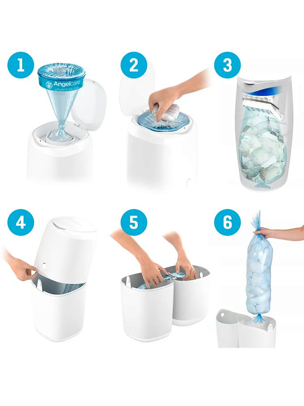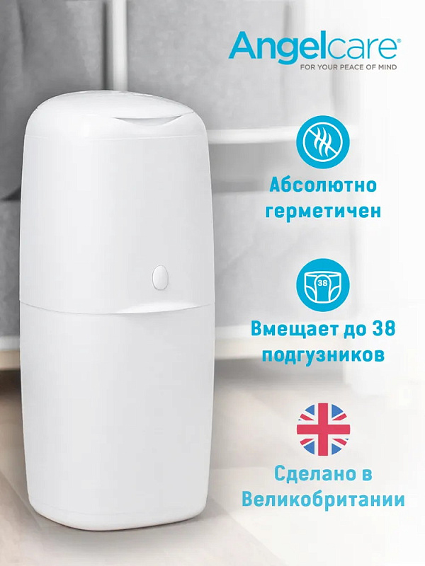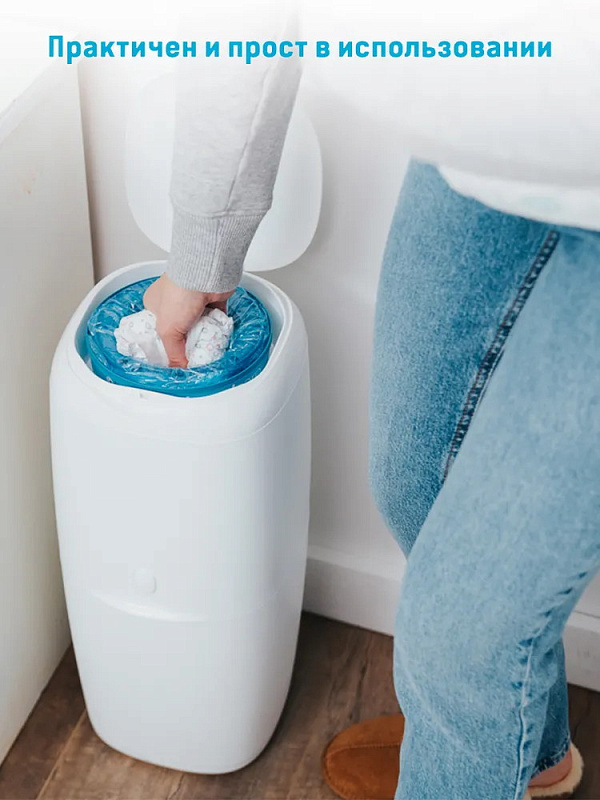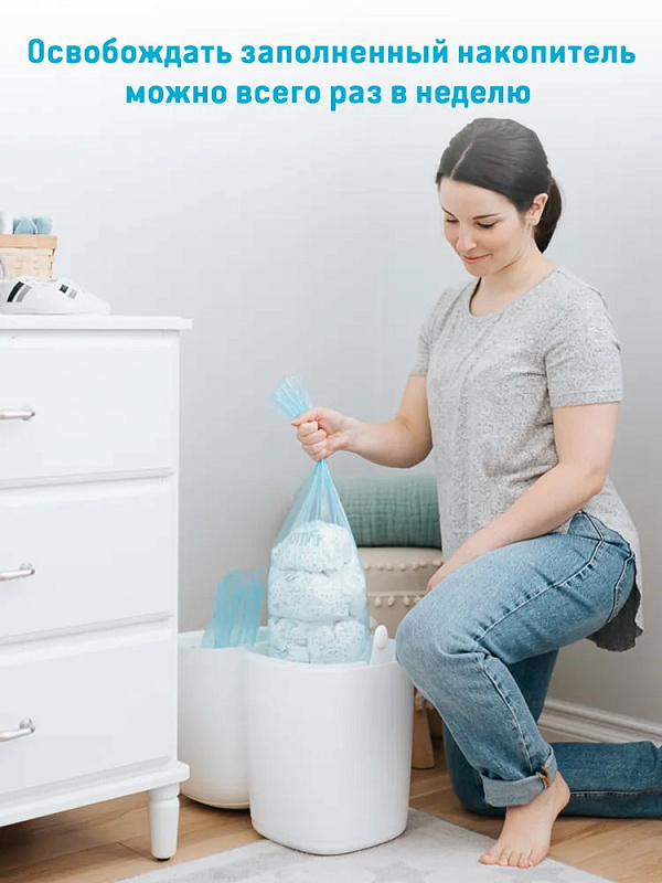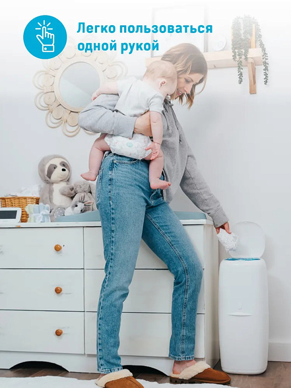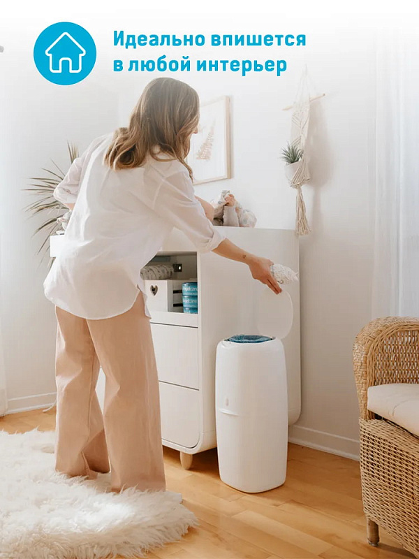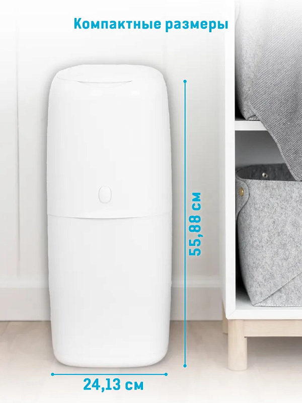 Удобный накопитель для памперсов удерживает внутри неприятные запахи и препятствует размножению бактерий, облегчает утилизацию подгузников. Специальный отсек вмещает до 38 стандартных памперсов. Модель эргономичной формы с элегантным дизайном.