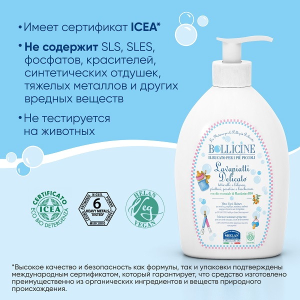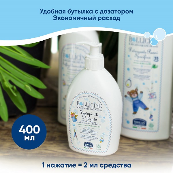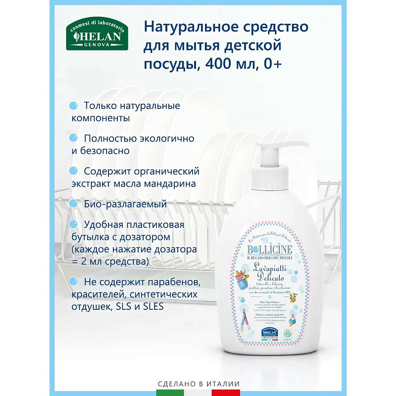 Натуральное средство Helan Bollicine для мытья детской посуды 400 мл
