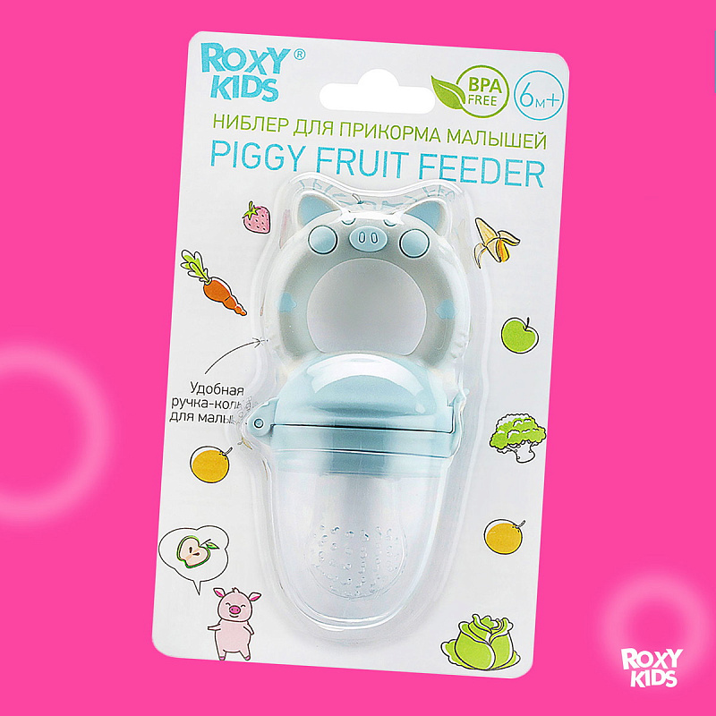 Ниблер для прикорма Roxy-Kids с силиконовой сеточкой Piggy RFN-008 голубой