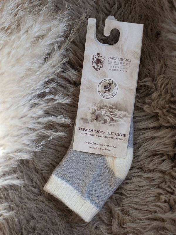Носки детские НаследникЪ Выжанова из шерсти мериноса SW8001 ЧЗ серый, р. 10 (0-6 мес)