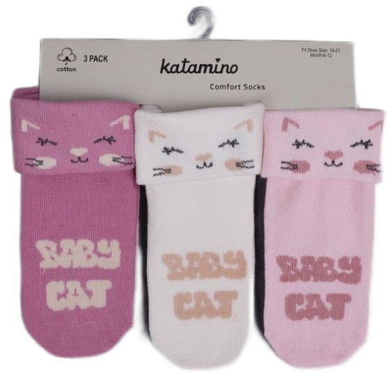 Носки Katamino с рисунком для девочки 3 пары 40120 K производятся в Турции. Продукция бренда Katamino зарекомендовала себя на международных рынках благодаря высокому качеству, использованию лучших материалов, оригинальному дизайну и широкому ассортименту. Состав носок включает 80% хлопка, 18% полиамида и 2% эластана.