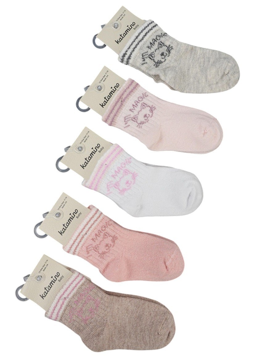 Носки Katamino с рисунком для девочки 46338 K производятся в Турции. Продукция бренда Katamino зарекомендовала себя на международных рынках благодаря высокому качеству, использованию лучших материалов, оригинальному дизайну и широкому ассортименту. Состав носок включает 80% хлопка, 18% полиамида и 2% эластана.
