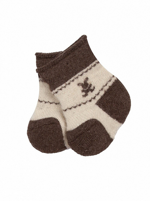 Носочки НаследникЪ Выжанова 100% овечья шерсть SW-MX ЧЗ бежевый/шоколад, зайчик, р. 0 8-12