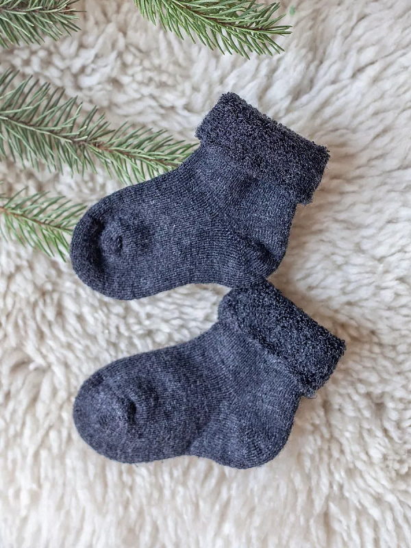 Термобелье от НаследникЪ Выжанова производится только из натуральной шерсти тонкорунных мериносов, поэтому все изделия очень мягкие, идеально подходят для детей с рождения и даже на голое тельце малыша.Термоноски для новорожденных - удобная деталь для создания ребенку комфортных условий: регулирует температуру тела и отлично отводят влагу. Носочки провязаны шерстяными петлями, которые создают дополнительную воздушную прослойку, а значит обеспечивают дополнительное тепло. Мягкие, приятные на ощупь, широкая резинка не пережимает ножку, делая ношение комфортным для ребенка.
