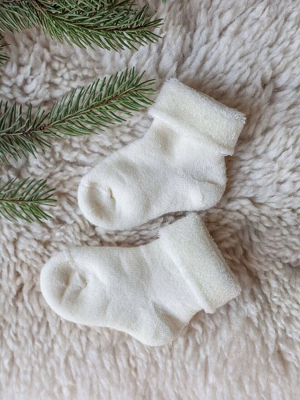 Термобелье от НаследникЪ Выжанова производится только из натуральной шерсти тонкорунных мериносов, поэтому все изделия очень мягкие, идеально подходят для детей с рождения и даже на голое тельце малыша.Термоноски для новорожденных - удобная деталь для создания ребенку комфортных условий: регулирует температуру тела и отлично отводят влагу. Носочки провязаны шерстяными петлями, которые создают дополнительную воздушную прослойку, а значит обеспечивают дополнительное тепло. Мягкие, приятные на ощупь, широкая резинка не пережимает ногжку, делая ношение комфортным для ребенка.