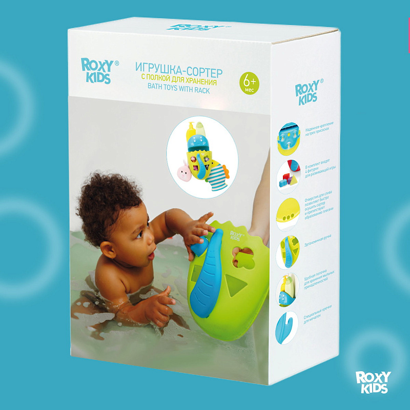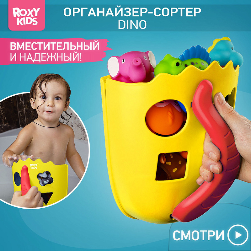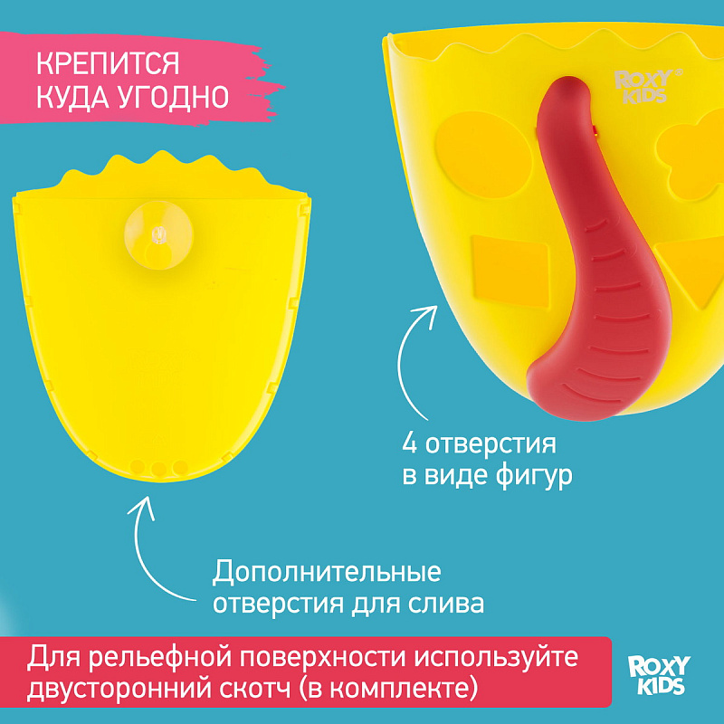 Органайзер Dino создан специально для хранения игрушек и банных принадлежностей. Теперь не придется искать их по всей ванной комнате – конструкция органайзера позволяет легко и быстро собрать игрушки и сохранить их в одном месте.