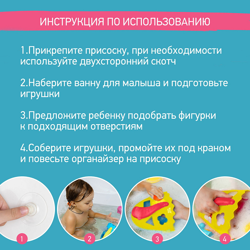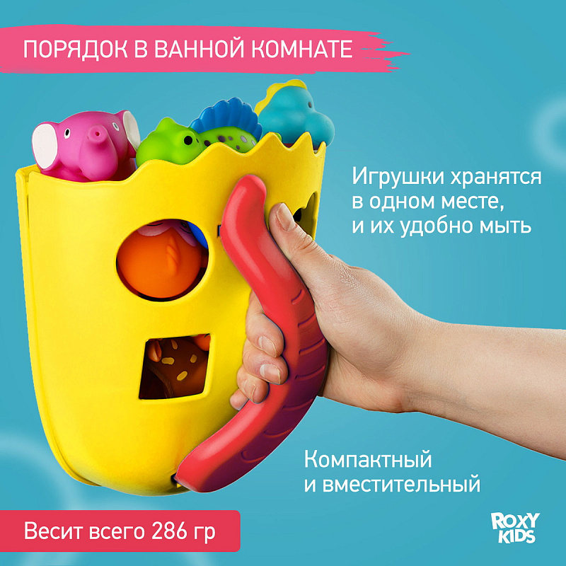 - практичная ручка и ковшевидная форма органайзера позволяют без труда выловить из воды все игрушки
