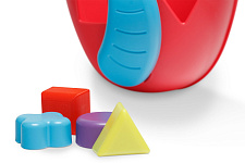 - может использоваться в качестве развивающей игры - 4 отверстия выполнены в виде фигур, и в комплект включены 4 сортера