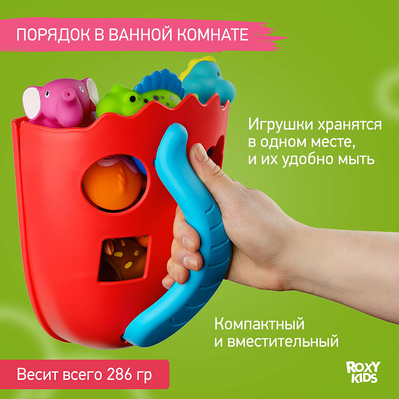- практичная ручка и ковшевидная форма органайзера позволяют без труда выловить из воды все игрушки