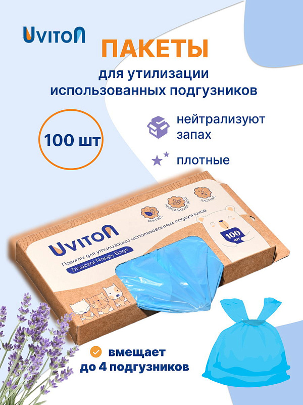 Пакеты для использованных подгузников Uviton 100 шт в упаковке с ароматом лаванды 0643Нет оценокХарактеристики