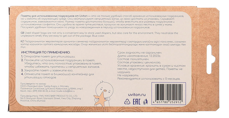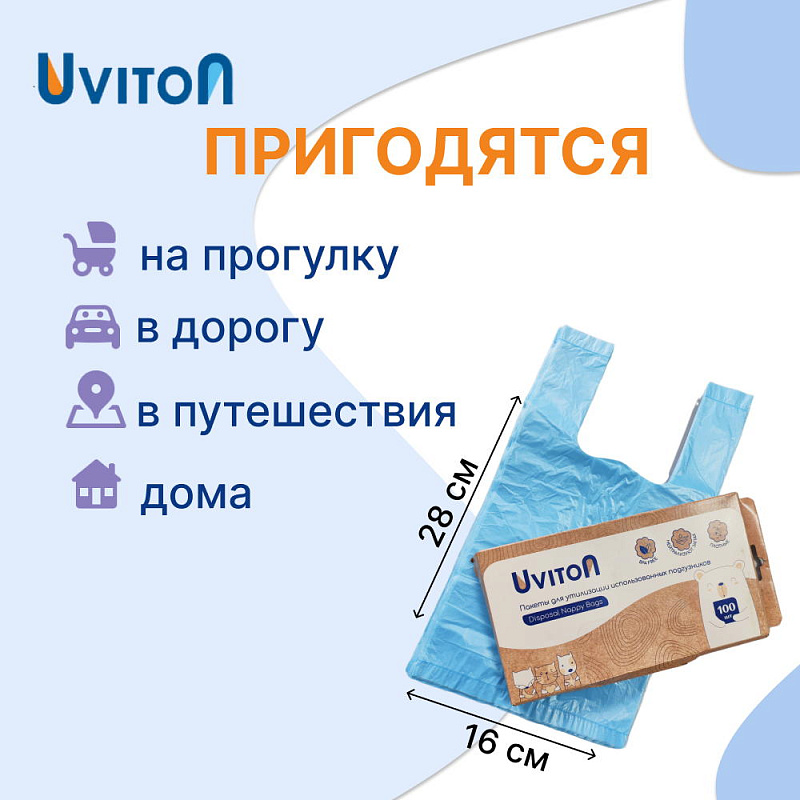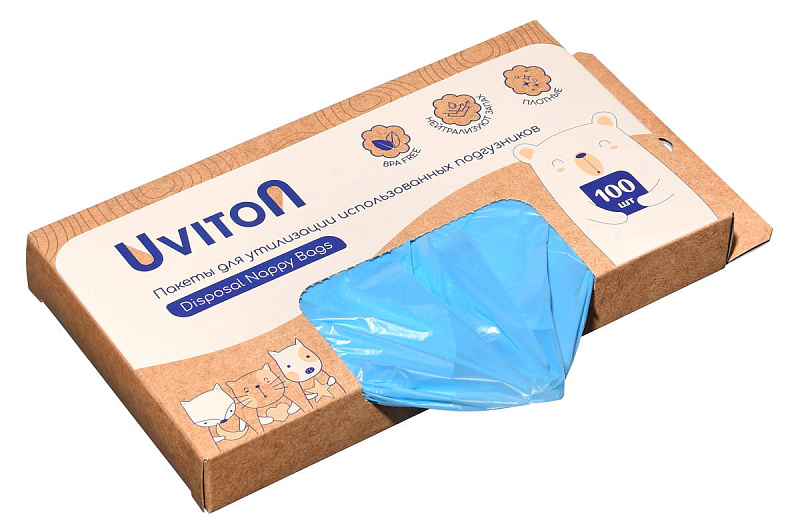 Ароматизированные пакеты для утилизации использованных подгузников и влажных салфеток от Uviton (100шт. в уп.).