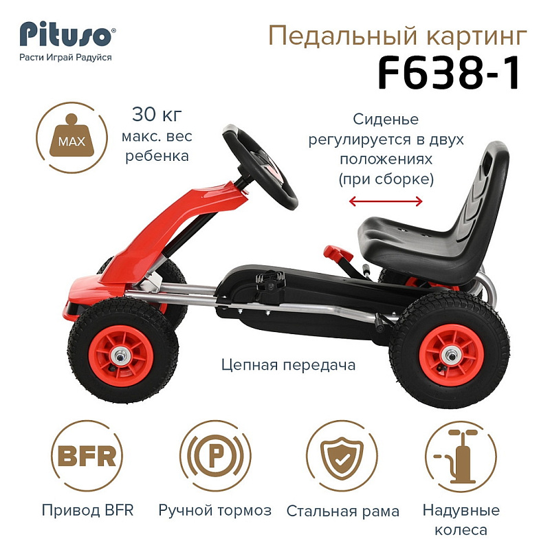 Педальный картинг PITUSO F638-1- это прекрасное сочетание велосипеда и автомобиля.