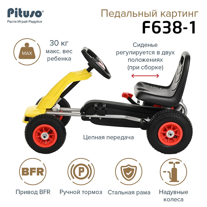 Педальный картинг PITUSO F638-1- это прекрасное сочетание велосипеда и автомобиля.