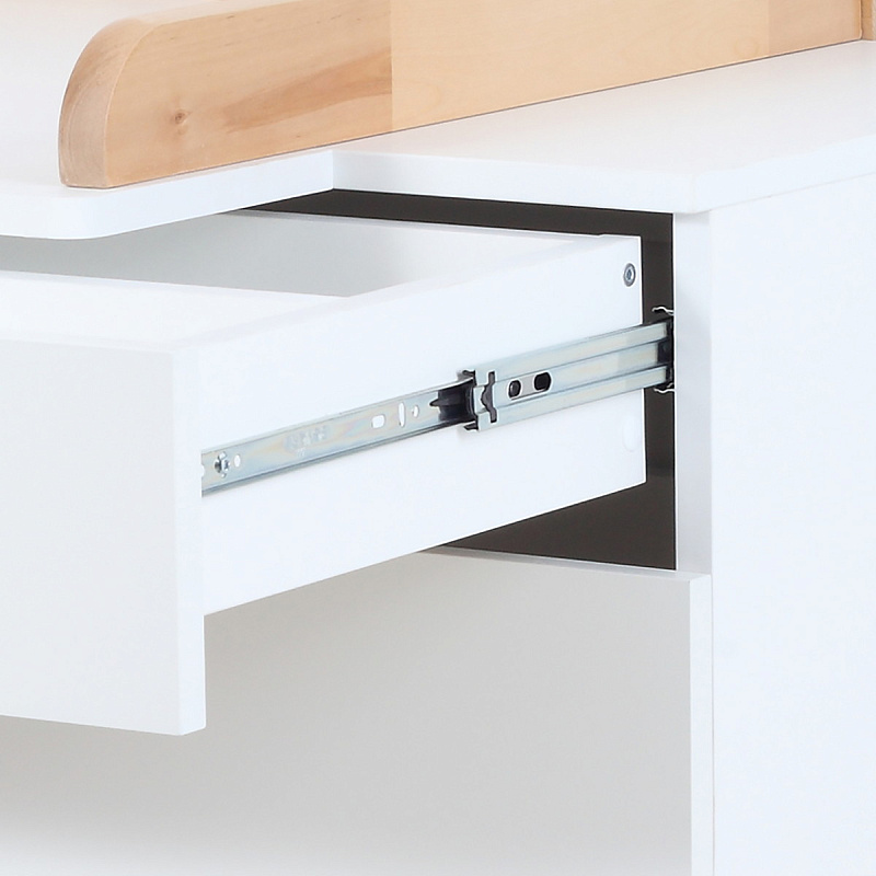 конечно же, комодик имеет бортик, превращающий его в полноценный пеленальный столик. Более того, можно менять положение пеленального бортика, устанавливая его правее или левее на поверхности комода.