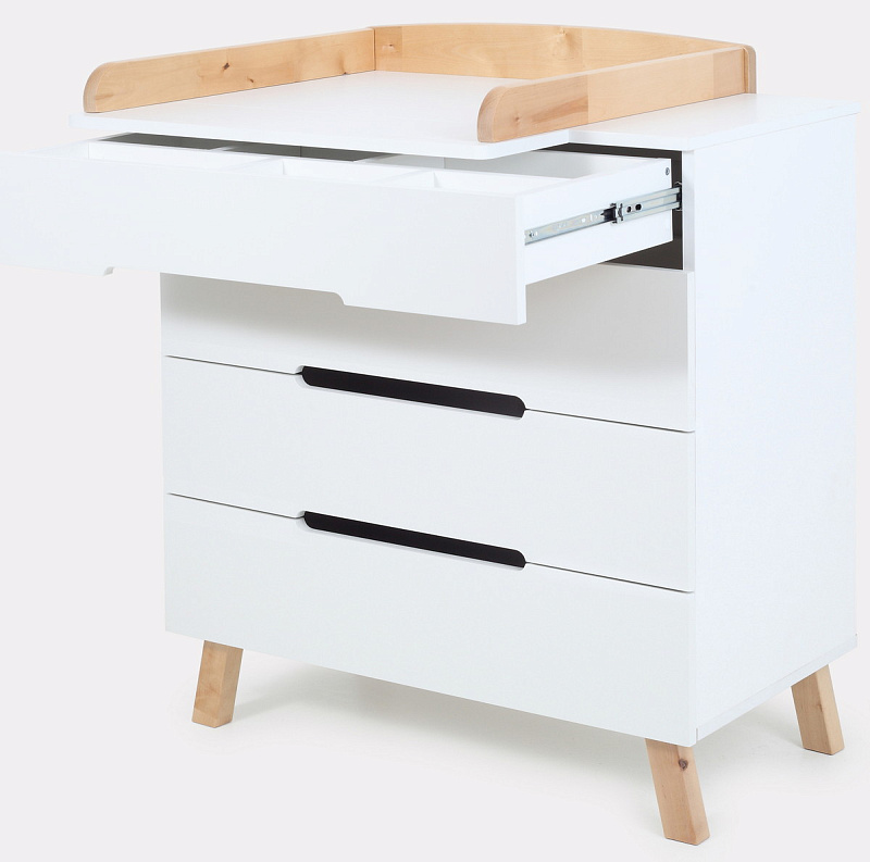Пеленальный комодик, выполненный в лаконичном скандинавском стиле, станет настоящим украшением детской комнаты и выдержит серьезные нагрузки.