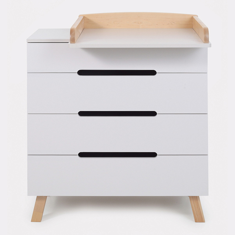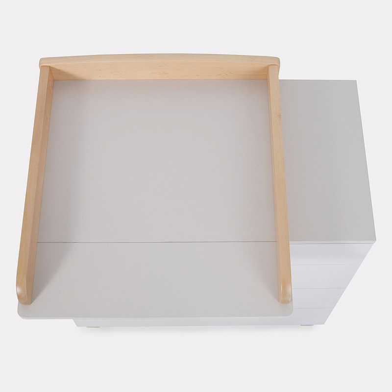 конечно же, комодик имеет бортик, превращающий его в полноценный пеленальный столик. Более того, можно менять положение пеленального бортика, устанавливая его правее или левее на поверхности комода.