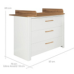 - Комод Ava со съемной пеленальной поверхностью имеет комфортную высоту пеленания 90,5 см.