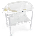 Ванночка располагается прямо под съемным матрасиком. Рассчитана на детей до 12 месяцев, подстраивается под разный возраст, так как с одной стороны находится сиденье под наклоном для малышей от 0 до 6 месяцев, а с другой стороны - сидения с подлокотниками для деток постарше. Быстрый слив воды обеспечивается благодаря встроенному шлангу. Складывается без особого труда одним простым движением. На нижней полке можете заметить специальную ручку, потянув за которую получите сложенный вариант конструкции.