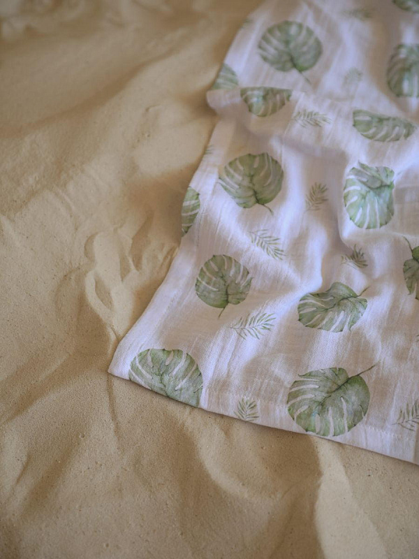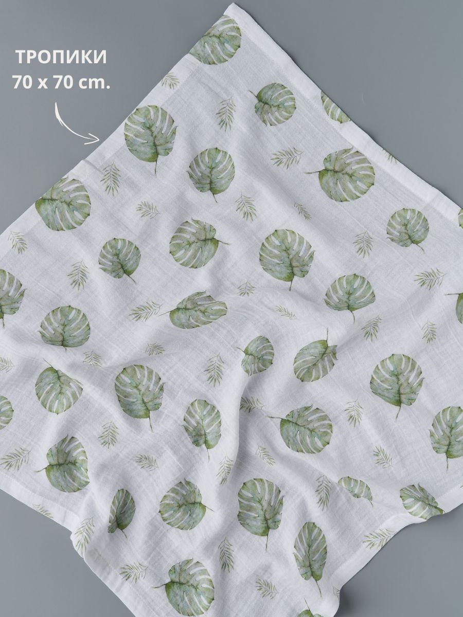 Пеленка Little Star муслиновая 70х70 6400468 (ЧЗ-мз) тропики на белом