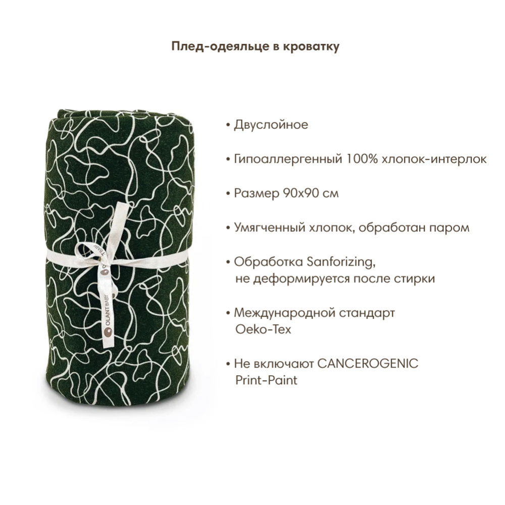 Одеяльце-плед изготовлено из натуральной ткани интерлок,100% хлопок. Ткань обработана паром и прошла специальную обработку, благодаря которой одеяльце невероятно нежное, что позволяет использовать ее с самого рождения.