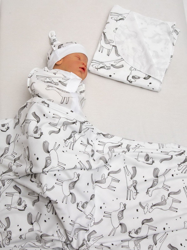 Пеленка-кокон на молнии Amarobaby Soft Hugs Единороги с шапочкой 56