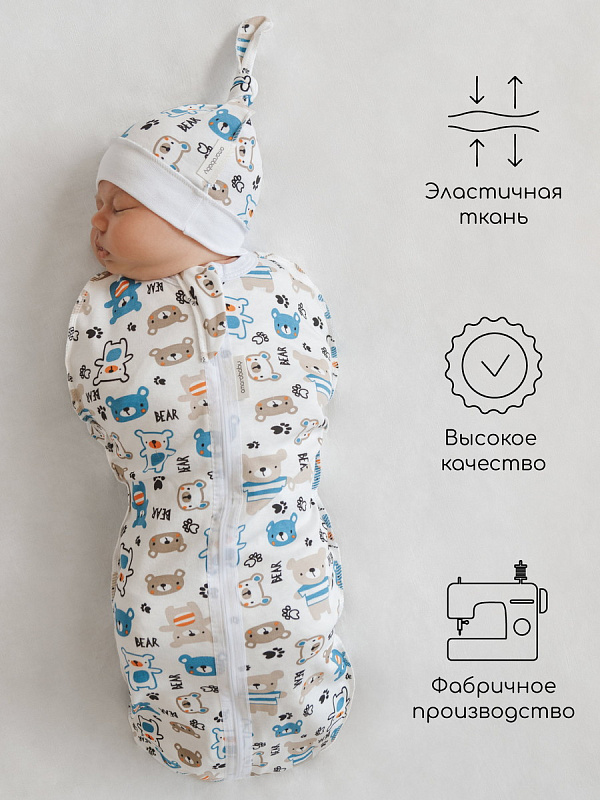 Мамы всех времен и народов знали, что кроха намного лучше спит, если ему не мешают ручки и ножки. Бренд AmaroBaby представляет современную альтернативу традиционному пеленанию! Пеленка-кокон на молнии AmaroBaby станет незаменимым помощником любой мамы! В комплекте с коконом для новорожденного на молнии идет уютная шапочка для новорожденного в роддом с узелком, завязывая которую можно регулировать глубину шапочки. Удобная форма кокона пеленки ласково зафиксирует малыша внутри так, что ручки будут надежно сложены вдоль туловища, а ножки прижаты друг к другу.