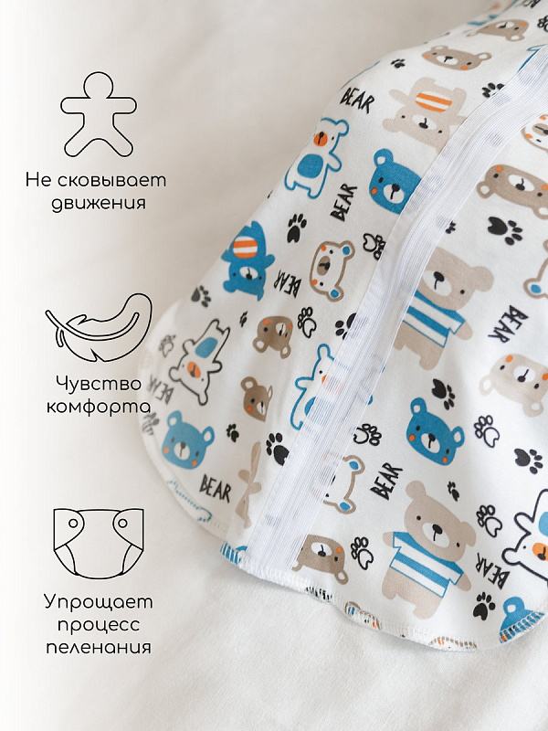 Пеленка кокон мягко обволакивает тело малыша, предотвращая «вскидывание» ручек во время сна и создает те же ощущения, которые он испытывал в животике у мамы. Конверт для новорожденного дарит чувство комфорта и безопасности новорожденному малышу, упрощает процесс пеленания за счет удобной формы, а удобная молния позволяет проверить подгузник, не разбудив ребёнка. Под горлышком кокона для сна и по всей длине молнии выполнена защита из ткани, которая исключает возможность нанесения травмы при застегивании и расстегивании молнии. Можно без труда застегнуть молнию, даже если ребенок очень активный.