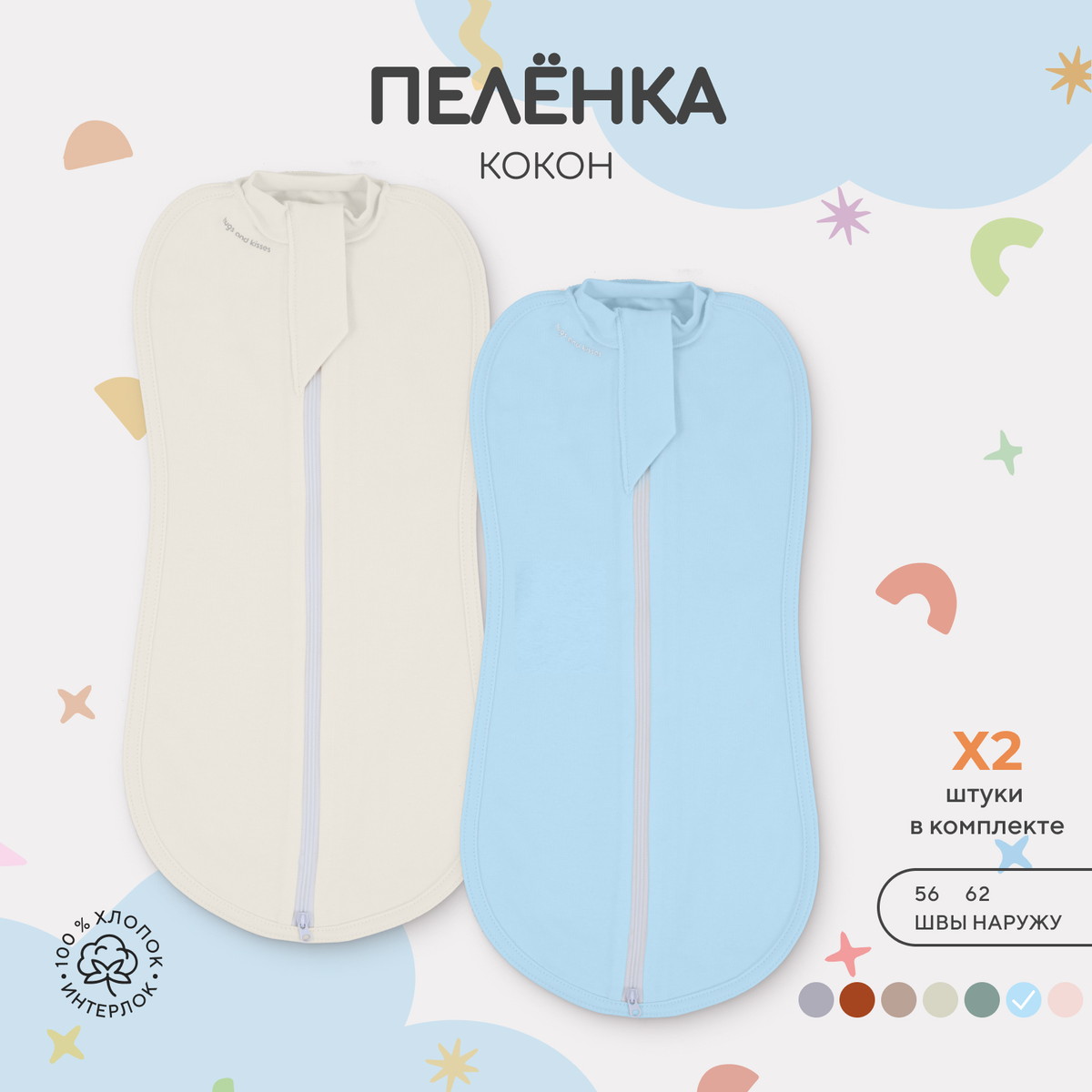 Пеленка-кокон Rant Hugs and Kisses на молнии 001272 2шт. Sky Blue 56