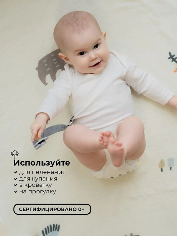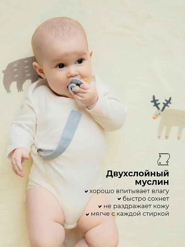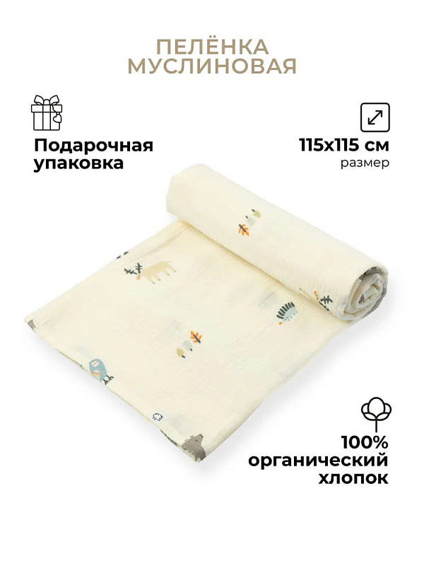Муслиновая пелёнка выполнена из органического хлопка. Лёгкая воздухопроницаемая ткань идеально подходит для нежной детской кожи: мягкая и приятная к телу, хорошо впитывает влагу и быстро сохнет, не вызывает аллергических реакций.