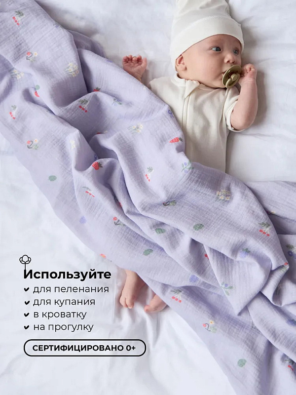 Муслиновая пелёнка выполнена из органического хлопка. Лёгкая воздухопроницаемая ткань идеально подходит для нежной детской кожи: мягкая и приятная к телу, хорошо впитывает влагу и быстро сохнет, не вызывает аллергических реакций.