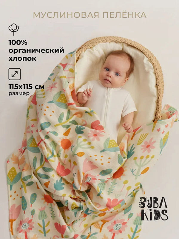 Пелёнка муслиновая Buba Kids, 115х115 см BKMUSSW51 Летний полдень