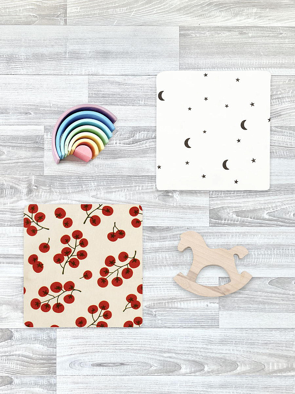 Произведено вручную в Санкт-Петербурге, с авторскими принтами и сертификатами на всю продукцию. Бережно упаковано в фатиновый мешочек и послужит хорошим подарком родным и близким к появлению на свет крошки.
