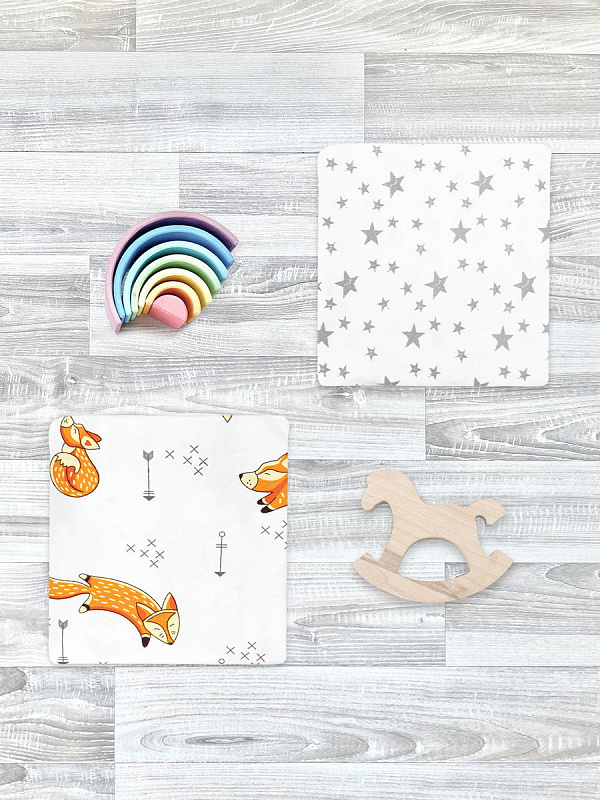 Пелёнки Mjolk трикотажные 2 шт 120х85 см Лисички/Звёзды