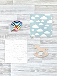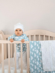 Произведено вручную в Санкт-Петербурге, с авторскими принтами и сертификатами на всю продукцию. Бережно упаковано в фатиновый мешочек и послужит хорошим подарком родным и близким к появлению на свет крошки.