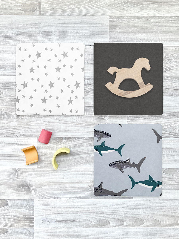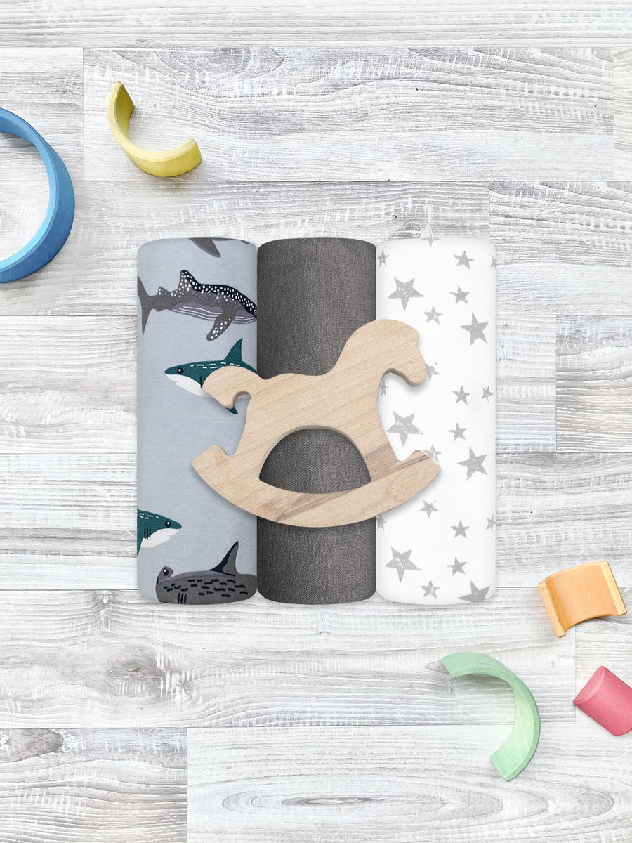 Пелёнки Mjolk трикотажные 3 шт 120х85 см Акулы/Звёзды/Steel Grey