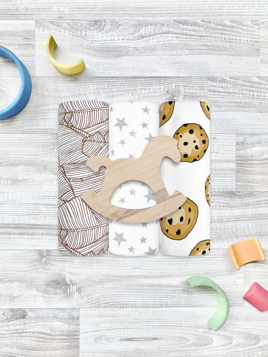 Пелёнки Mjolk трикотажные 3 шт 120х85 см Печенье/Palm Tree/Звёзды